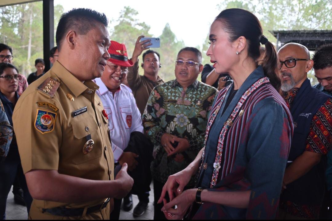 Menteri Pariwisata RI, Widiyanti Putri Wardhana, Bupati Humbahas Dr Oloan P Nababan SH MH bersama kepala daerah di kawasan Danau Toba termasuk Gubsu Muhammad Bobby Afif Nasution melakukan pertemuan terkait pengembangan Destinasi Geopark Kaldera Toba bertempat di The Kaldera Sibisa Toba Kabupaten Toba Sumut, Selasa 8 Juli 2025.