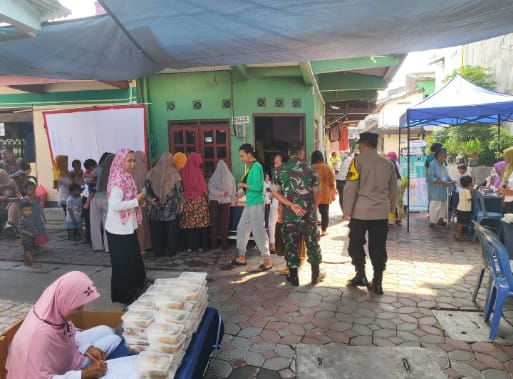 Surakarta, Babinsa Kelurahan Serengan Koramil 03/Serengan Kodim 0735/ Surakarta Sertu Suwarno ikuti dan motivasi kegiatan Ndulang (Menyuapi) bersama Balita bertempat di b