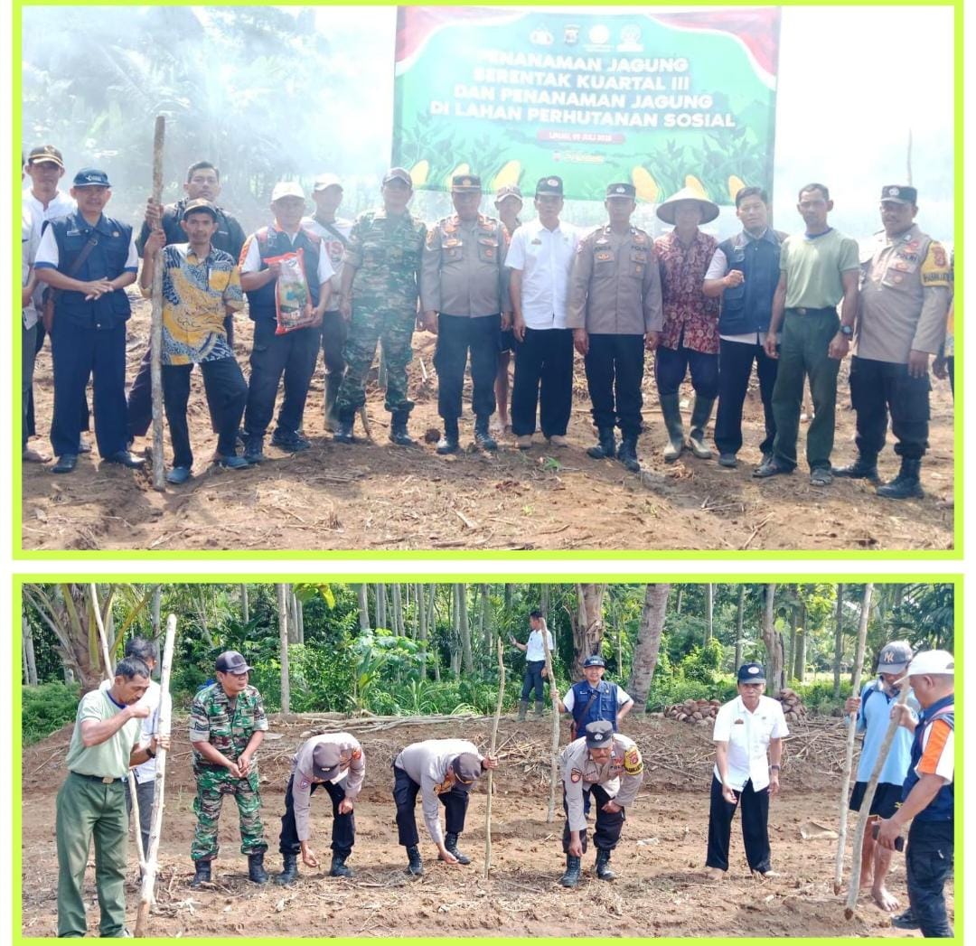Dalam upaya mendukung ketahanan pangan nasional, Polsek Limau Iptu Dedi Yanto.S.Pd., melaksanakan kegiatan penanaman jagung serentak di lahan produktif seluas