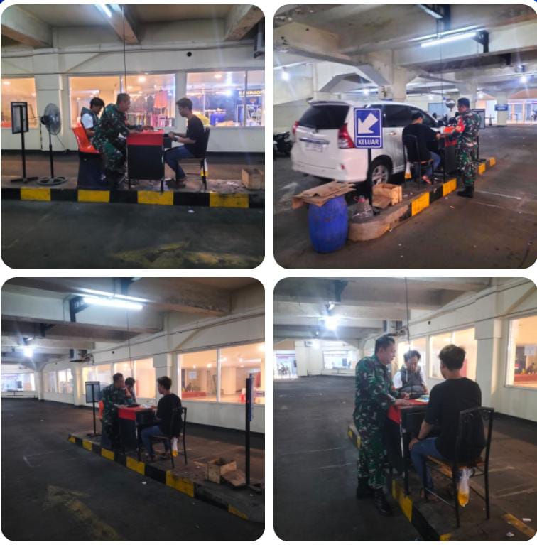 Babinsa Kemlayan dalam kesempatan melaksanakan komunikasi sosial atau komsos dengan Warga Binaan di wilayahnya menyampaikan pentingnya menjaga keamanan dan kenyamanan para pelanggan yang parkir di lobi gedung mall matahari Singosaren.