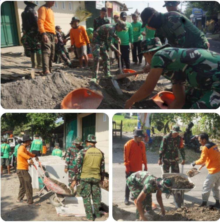 Surakarta – Tak pandang cuaca panas atau hujan, Sinergitas TNI yang tergabung dalam Satgas TMMD Reguler Ke -125 Kodim 0735/Surakarta tak pernah luntur untuk terus melanjutkan pengerjaan di tiap – tiap sasaran. Semangat gotong royong, saling bahu-membahu terus menghiasi suasana bekerja di setiap sasaran dalam Program TMMD Ke -125 Kodim 0735/Surakarta.