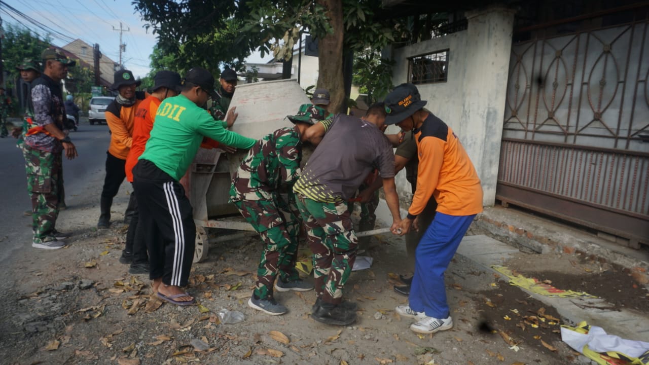 Semangat selalu tertanam pada segenap anggota TNI yang tergabung dalam Satgas TMMD Reguler ke-125 Kodim 0735/Surakarta, Dedikasi Terbaik membangun NKRI, bersama masyarakat di Kelurahan Karangasem, Kecamatan Laweyan,