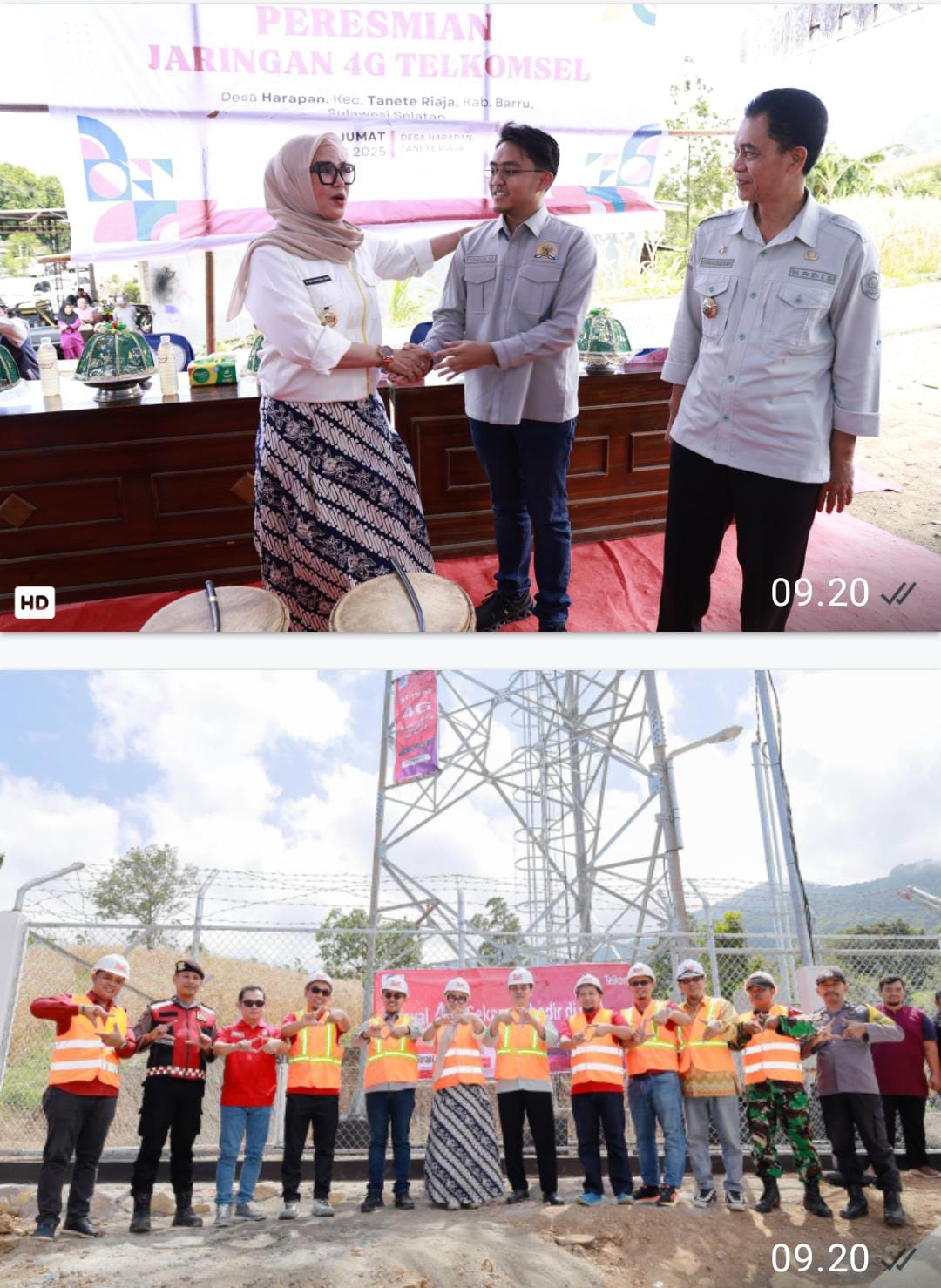 Bupati Barru, Andi Ina Kartika Sari, S.H., M.Si., secara resmi meresmikan pengoperasian Tower Base Transceiver Station (BTS) jaringan 4G Telkomsel di Desa Harapan, Kecamatan Tanete Riaja,Kabupaten Barru, (1/8/25).