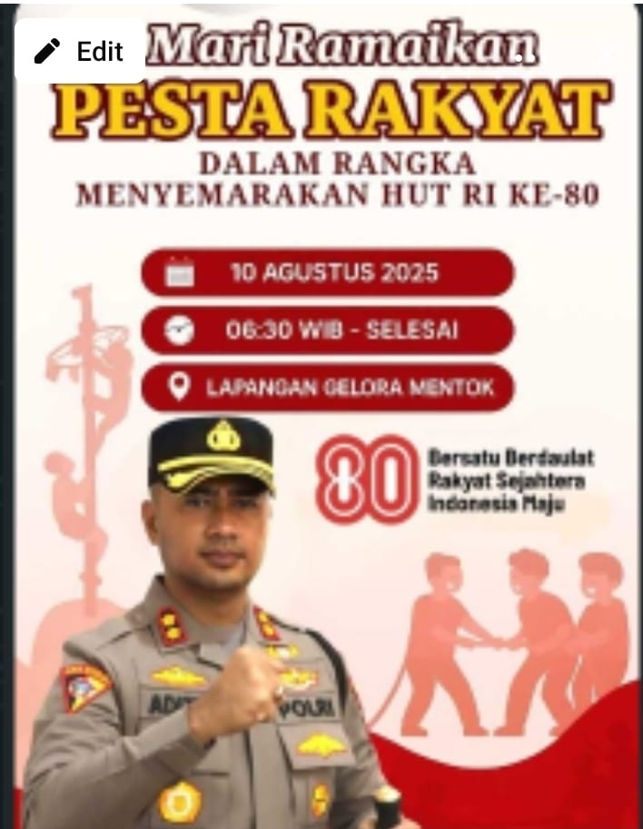 Bangka Barat ‘ Dalam rangka memperingati Hari Ulang Tahun Republik Indonesia ke-80, Polres Bangka Barat akan menggelar Pesta Rakyat yang terbuka untuk seluruh lapisan masyarakat.