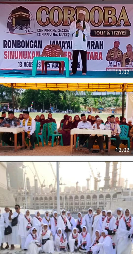 Sinunukan Selasa 12/08/2025 pemberangkatan jamaah umroh dilepas langsung oleh Ka. KUA Kecamatan Sinunukan Depag Mandailing Natal dan Camat Sinunukan Daiman Nasution SPd