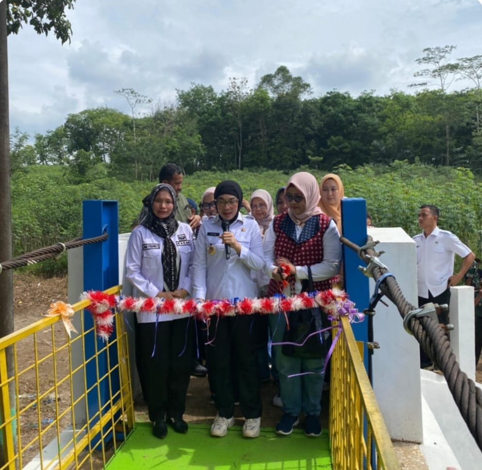 Bupati Way Kanan, Ayu Asalasiyah, S.Ked., menghadiri Acara Peresmian Jembatan Gantung Baja dan Pembangunan Rehabilitasi SD Negeri 03 Gunung Katun, di Kampung Gunung Katun, Kecamatan Baradatu, Rabu (13/08/2025).