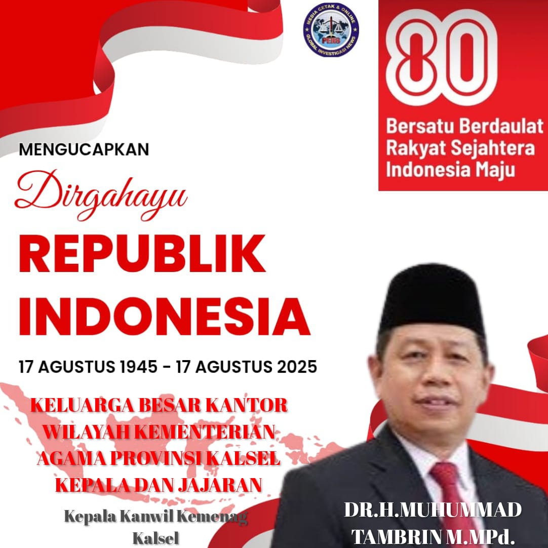Keluarga Besar Kepala Kantor Wilayah Kementerian Agama Provinsi Kalimantan Selatan Dan Jajaran Mengucapkan Dirgahayu Republik Indonesia Ke-80