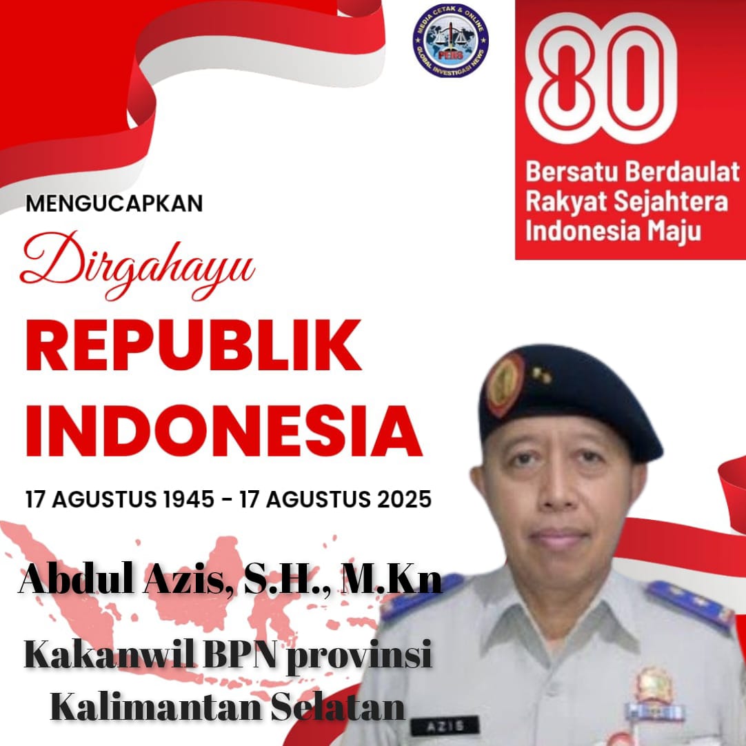 Kepala Kantor Wilayah BPN Provinsi Kalimantan Selatan Mengucapkan Dirgahayu Republik Indonesia Ke-80
