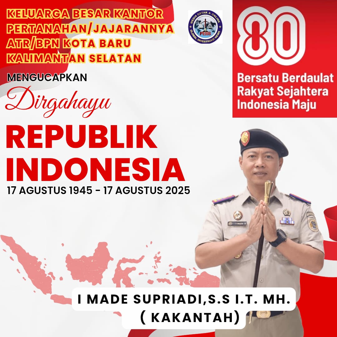 Keluarga Besar Kantor Pertanahan/ATR Kabupaten Kota Baru Provinsi Kalimantan Selatan Mengucapkan Dirgahayu Republik Indonesia Ke-80