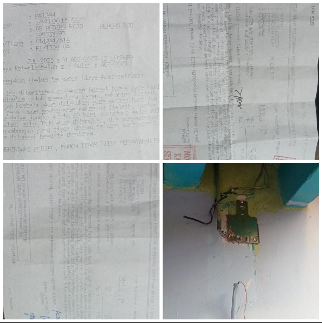 Keterangan pemilik rumah yang di sampaikan ke pada awak media ini, pihak PLN sama sekali tidak punya toleransi sama sekali,adahal tagihan listrik hanya menunggak bulan Juli 2025,dan Istri yang ada dirumah meminta kepada Petugas PLN agar menunggu suaminya pulang kerja.