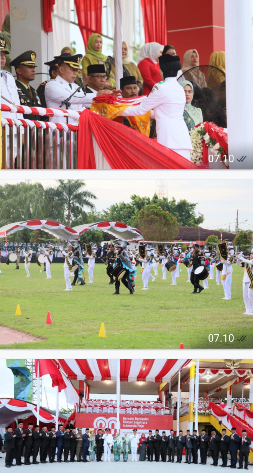Bupati Barito Kuala H. Bahrul Ilmi menyampaikan rasa syukur dan bangga atas khidmatnya pelaksanaan upacara. “Hari ini kita semua diberi kesempatan untuk kembali mengenang jasa para pahlawan, dan atas karunia Allah SWT kita bisa merayakan 80 tahun kemerdekaan Indonesia dengan penuh suka cita,” ujarnya. Masyarakat Barito Kuala pun tampak antusias mengikuti rangkaian kegiatan hingga akhir, menandai semangat kebersamaan dan kecintaan pada Tanah Air yang terus hidup di Bumi Ije Jela.(KOMINFO/YUDAY)
