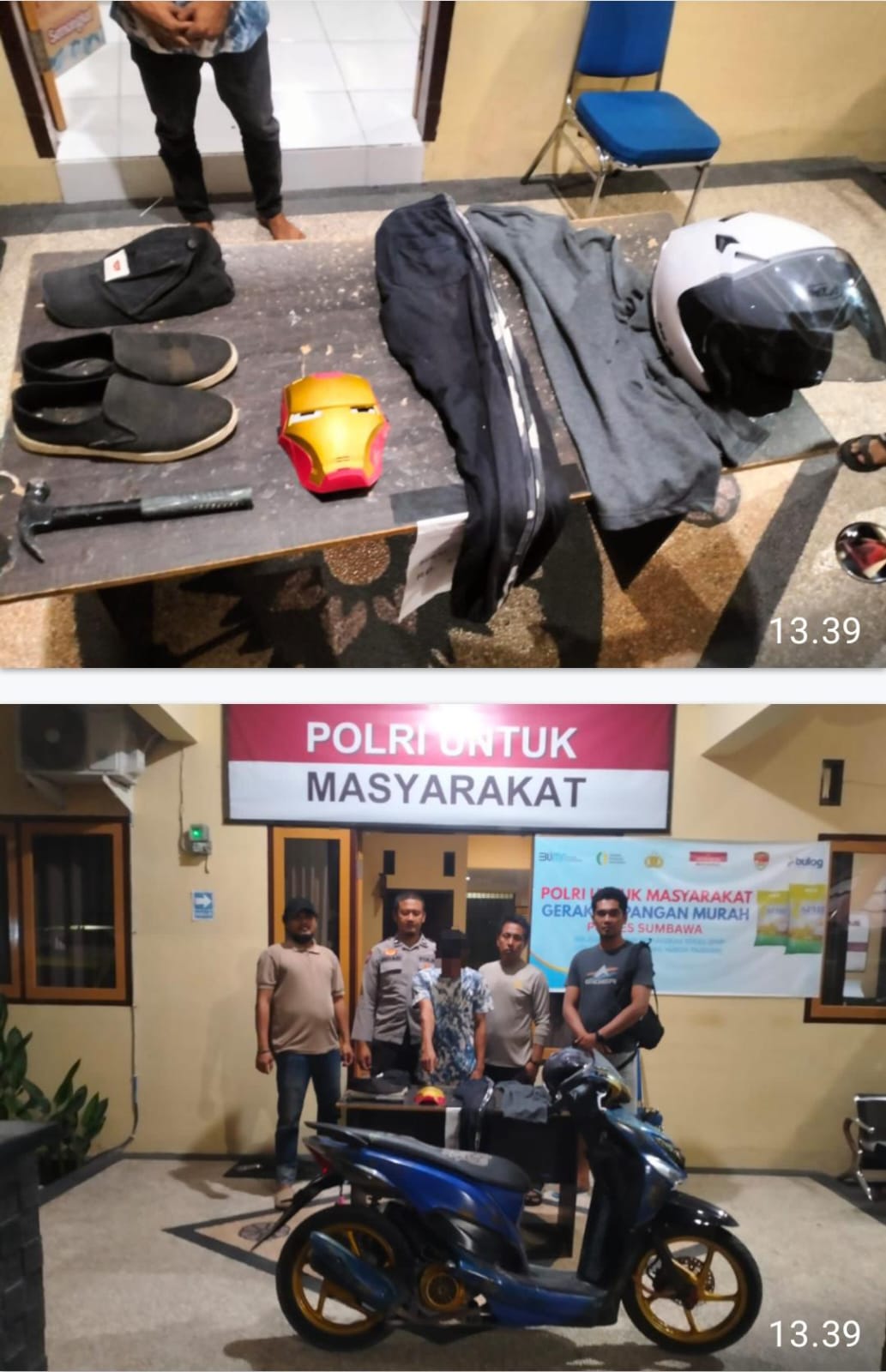 Pembobolan Toko di Sumbawa Ditaksir Kerugian Capai Rp. 20 Juta, Polisi Tangkap Terduga Pelaku Dengan Sebagian Barang Bukti.