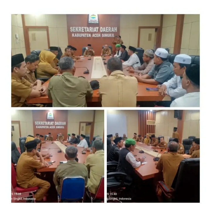 Pertemuan yang berlangsung di Off Room Sekdakab Aceh Singkil pukul 15.00 WIB itu turut dihadiri Asisten III Sekdakab Aceh Singkil Asmarudin, S.H., Plt. Kadis Syariat Islam Drs. Abdul Hanan, Plt. Kadis Kesehatan Mursal, Plt. Kepala BPBD, serta Sekretaris Satpol PP.