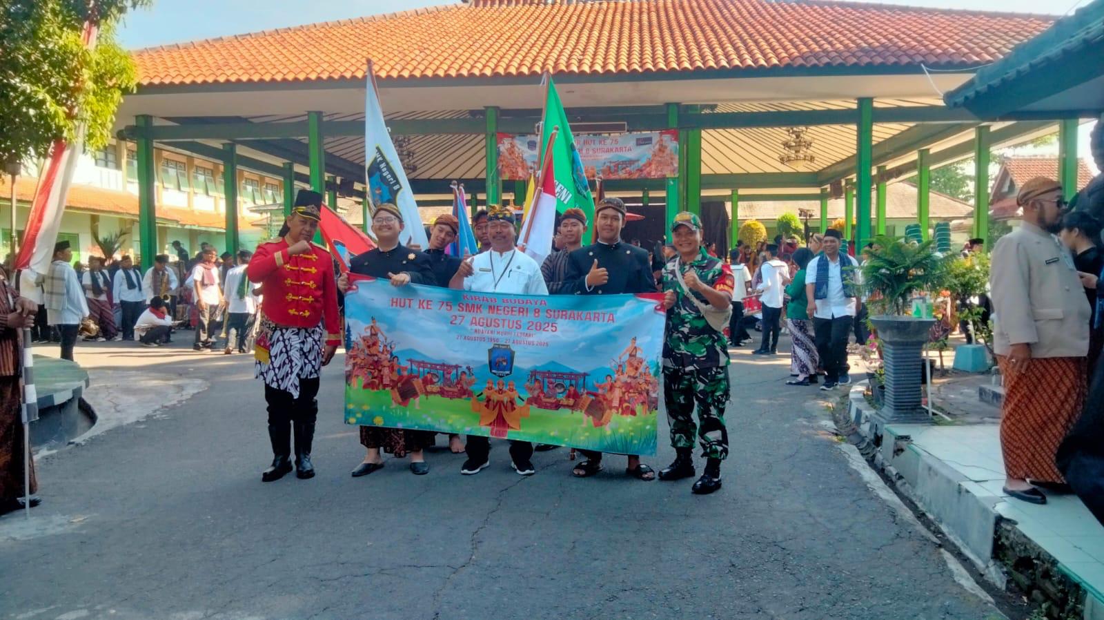 Sertu Budiono mengatakan, bahwa kegiatan pawai budaya seperti ini sudah rutin dilaksanakan setiap tahun sebagai wujud rasa syukur dan bangga sebagai bagian dari sebuah bangsa yang merdeka,”Kali ini pawai budaya dalam rangka peringatan HUT SMKN 08/Surakarta ke 75,” Ucapnya.