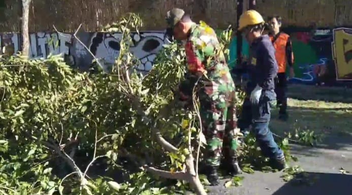 Surakarta – Dalam rangka menciptakan lingkungan yang bersih dan nyaman, Babinsa Kelurahan Manahan Serma Saring Bersama dengan Dinas Lingkungan Hidup (DLH) Kota Surakarta melaksanakan kerja bakti pemangkasan pohon yang rimbun dan berada di pinggiran Jalan umum dan hunian warga yakni di Jln. Samratulangi Kelurahan Manahan, Kecamatan Banjarsari, Selasa (26/08/2025).