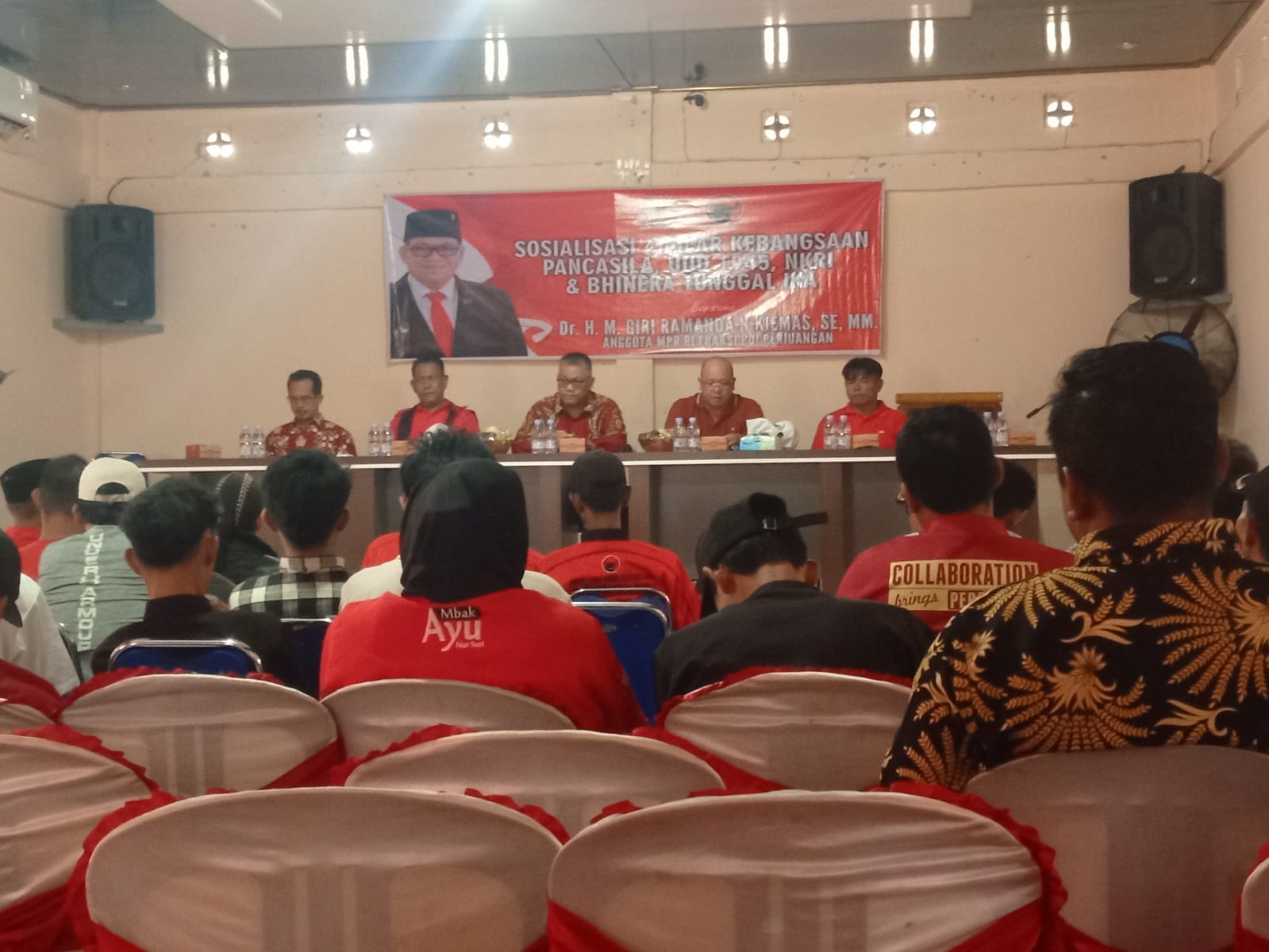 Begitu juga sambutan yang di sampaokan Bapak. Dr H. GIRI RAMANDA KIEMAS N. SE.MM selaku Anggota DPR. RI menyampaikan Bahwa Pancasila adalah sebagai Dasar Negara dan UUD 1945 Landasanya Ideologi Pancasila