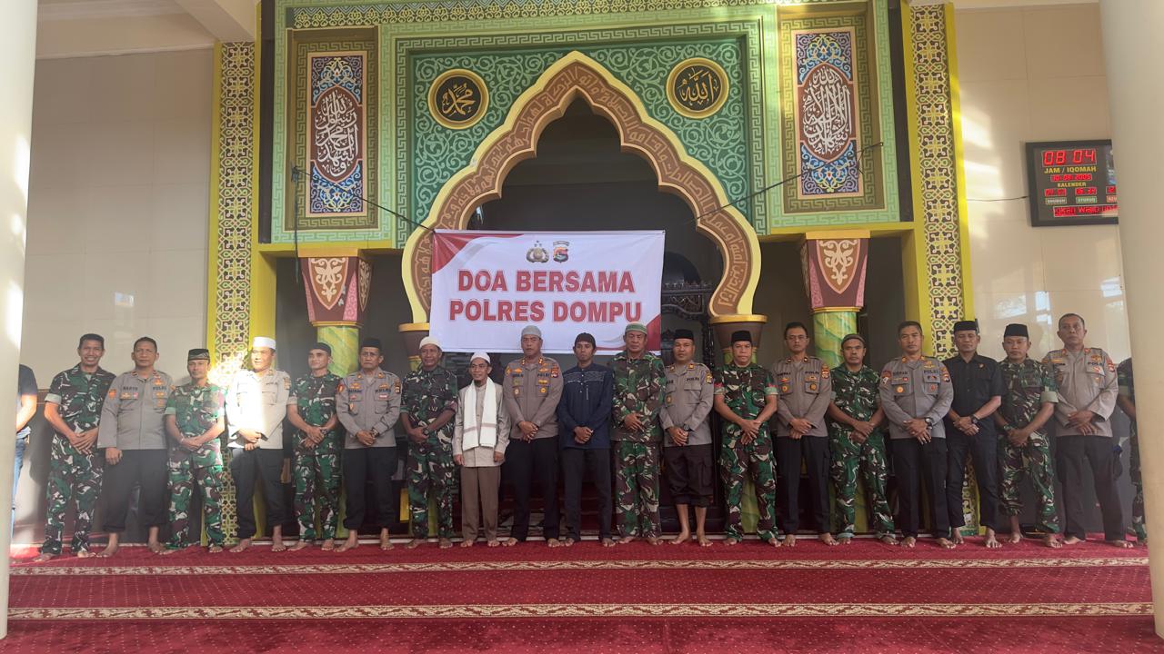 Doa bersama dipimpin langsung oleh Kapolres Dompu, AKBP Sodikin Fahrojin Nur, S.I.K., dan diikuti oleh personel Polres Dompu yang beragama Islam serta anggota Kodim 1614 Dompu. Rangkaian kegiatan dimulai dengan pembacaan Surat Al-Fatihah oleh Ustad H. Lalu Syarifuddin, S.Q., dilanjutkan dengan salat gaib, dan diakhiri dengan doa bersama yang juga dipimpin oleh ustad yang sama.