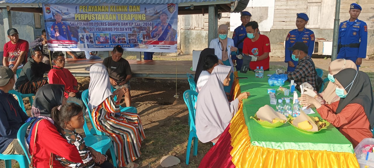Dalam upaya mendekatkan pelayanan kepada masyarakat pesisir, Sat Polairud Polres Dompu, melaksanakan dua kegiatan sosial yakni Perpustakaan Terapung dan Klinik Terapung di Pangkalan Kapal XXI – 2014, Desa Calabai, Kecamatan Pekat, Kabupaten Dompu, pada Sabtu, 30 Agustus 2025.