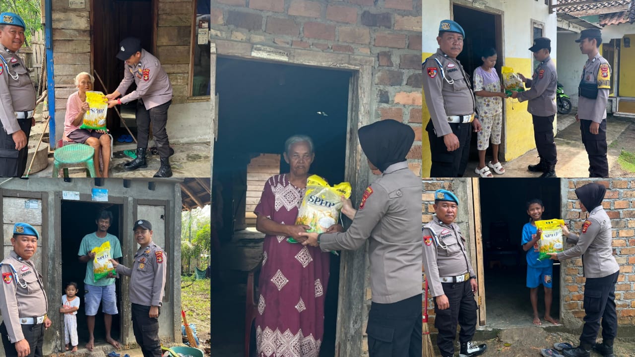 Kapolres Way Kanan AKBP Adanan Mangopang yang diwakilkan Bhabinkamtibmas Polsek Blambangan Umpu mengunjungi sekaligus memberikan bansos (bantuan sosial) beras 5 Kg kepada 50 warga yang kurang mampu. Selasa (2/9/2025).