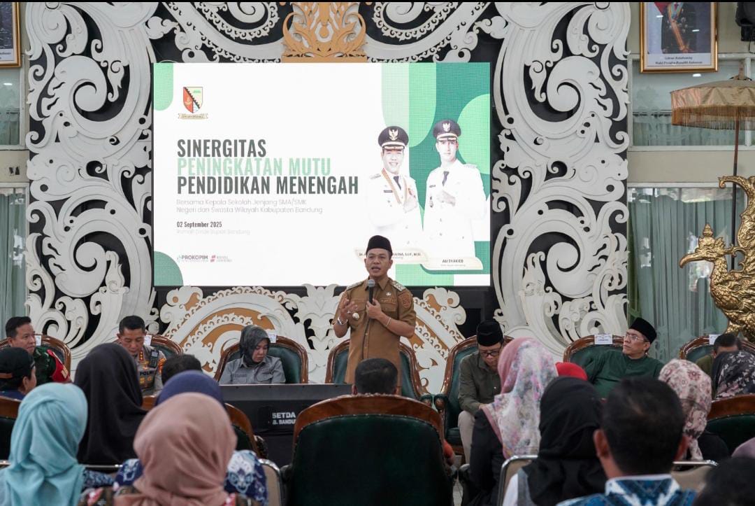 Diungkapkan Kang DS saat pertemuan Sinergitas Peningkatan Mutu Pendidikan Menengah bersama Kepala Sekolah Jenjang SMA/SMK/MA Negeri dan Swasta Wilayah Kabupaten Bandung, di Rumah Dinas Bupati di Soreang, Selasa 2 September 2025.