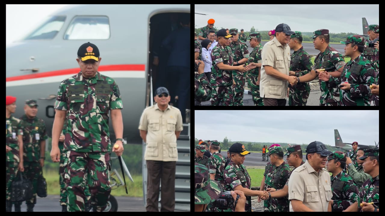Komandan Kodim 0427/Way Kanan Letkol Arm Sigit Windarto, S.Sos., M.Han menyambut kedatangan Menteri Pertahanan Republik Indonesia Jenderal (Purn) Sjafrie Sjamsoeddin bersama Panglima TNI Jenderal TNI Agus Subiyanto, S.E., M.Si beserta Rombongan di Lanudad Gatot Soebroto, Way Tuba, Kabupaten Way Kanan, Rabu (03/09/2025).