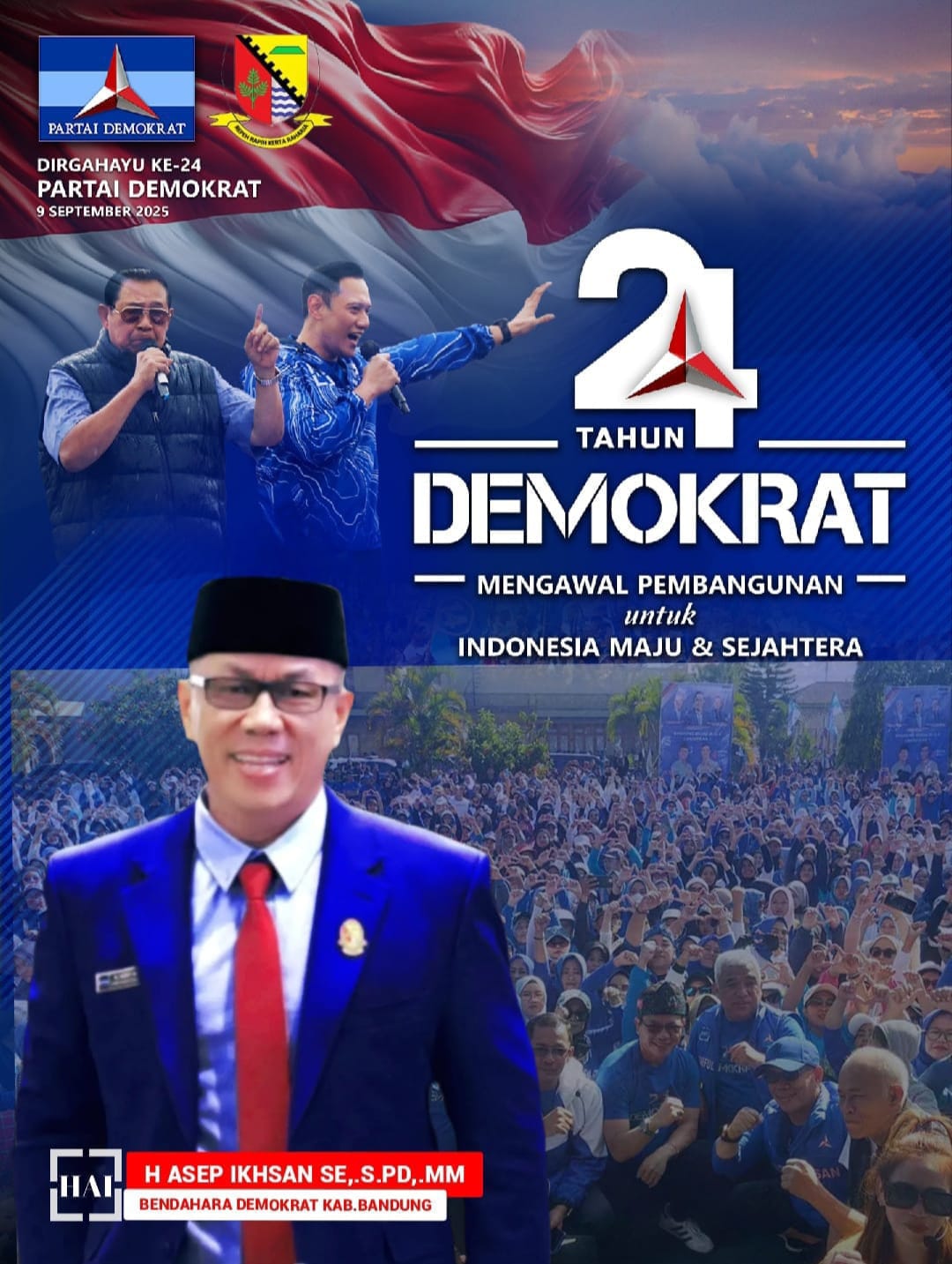 Demokrat Ceria mengusung Tema” Mengawal Pembangunan Untuk Indonesia Maju Dan Sejahtera,Ketua Fraksi Partai Demokrat DPRD Kabupaten Bandung Asep Ikhsan.Mengatakan selamat Hari Ulang Tahun Partai Demokrat Ke.24 Semoga Partai Demokrat tetap Jaya mengabdi untuk Rakyat nya.