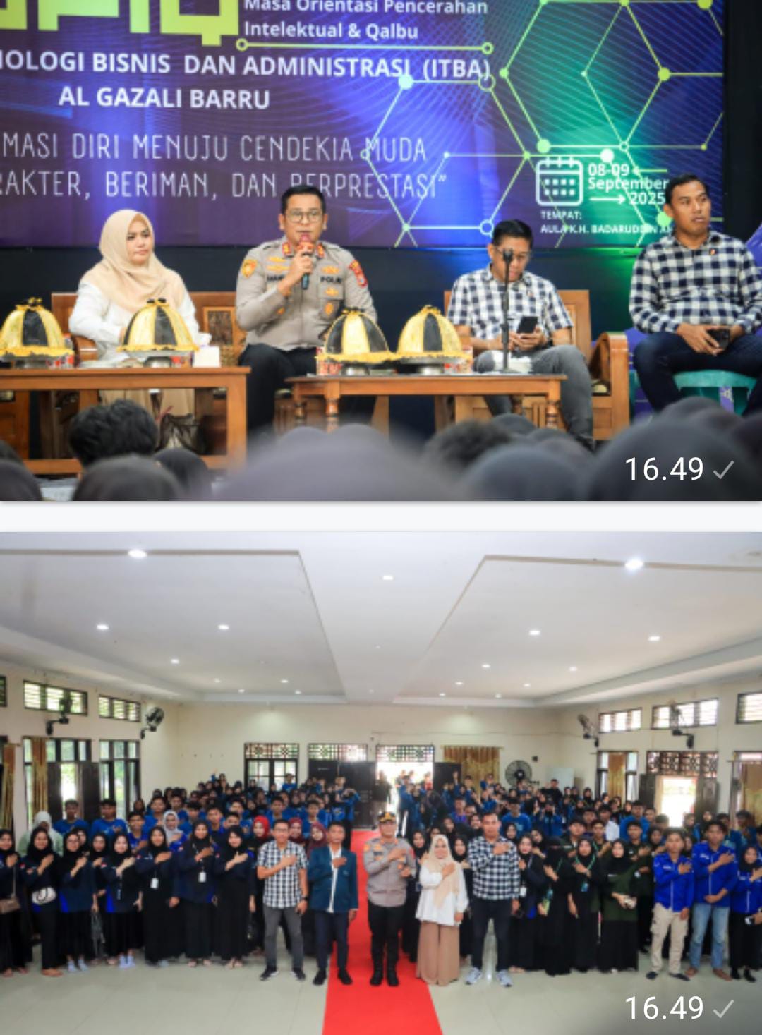 Kapolres Barru, AKBP Ananda Fauzi Harahap, S.I.K., M.H., membawakan kuliah umum pada pelaksanaan Masa Orientasi Pencerahan Intelektual bagi mahasiswa baru Institut Teknologi dan Bisnis Administrasi Al Gazali Barru, (9/9/25).