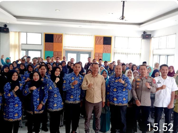 Kapolsek Solokan Jeruk Iptu.Fathan Malisi.SH.serta ketua Koordinator Wilayah Solokan Jeruk Taufik Abdulah dan Jajaran Kepala Sekolah SD,SMP Dan Tingkat Atas SMA/MAN se kecamatan solokan Jeruk serta hadir Kepala Puskesmas UPTD se kecamatan Solokan jeruk.