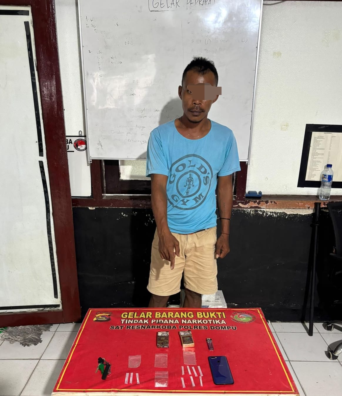 Upaya pemberantasan peredaran narkotika oleh jajaran Kepolisian Resor (Polres) Dompu kembali membuahkan hasil. Tim Opsnal Satresnarkoba Polres Dompu berhasil mengamankan seorang pria berinisial A (34), warga Kelurahan Potu, Kecamatan Dompu, yang diduga kuat sebagai pelaku tindak pidana peredaran narkotika jenis sabu.