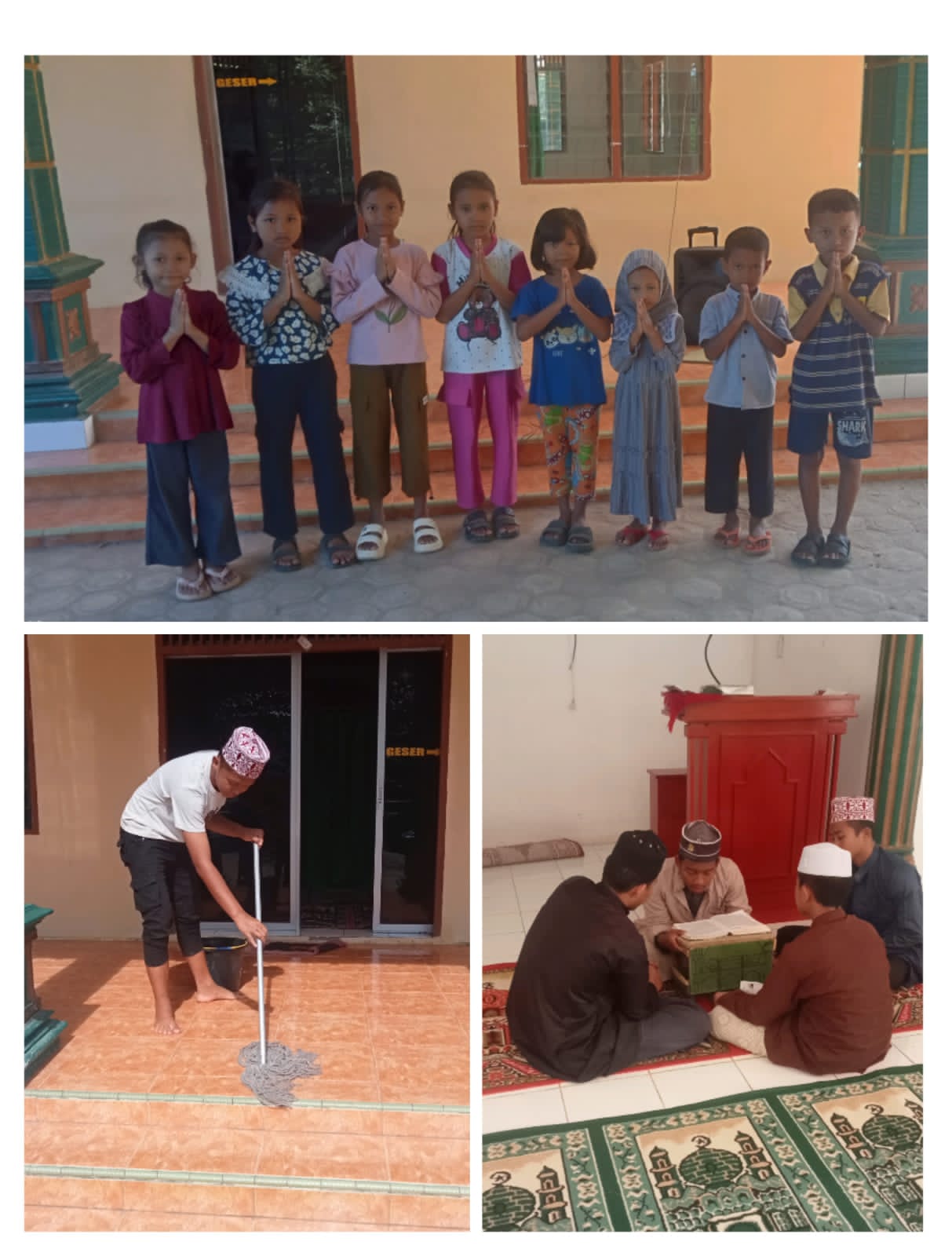 Pantauan awak media Online GLOBALINVESTIGASI NEWS terlihat anak-anak yang masik Dini dan yang sudah sekolah SD tersebut terasa akrab dengan para Santri-Santri dalam belajar sholawatan, dan terlihat sabarnya para Santri membimbing anak-anak Dusun itu Minggu 21/9/2025.