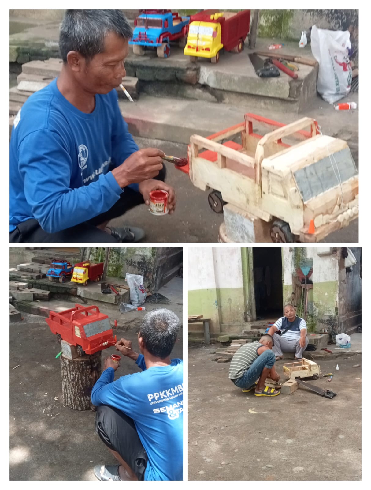 DONGKRAK EKONOMI WARGA DESA GIAT BUAT MAINAN ANAK ANAK DARI KAYU.