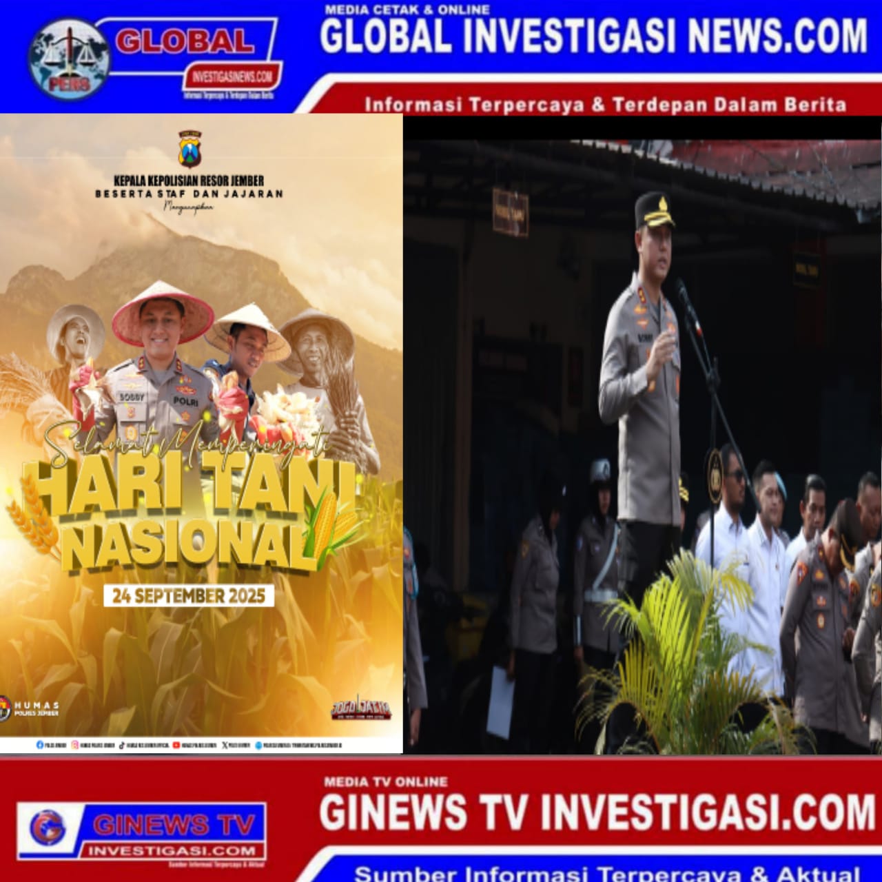 Kapolres Jember, AKBP Bobby A. Condroputra, menyampaikan apresiasi tinggi kepada seluruh petani, khususnya di Kabupaten Jember yang dikenal sebagai salah satu daerah lumbung pangan di Jawa Timur.