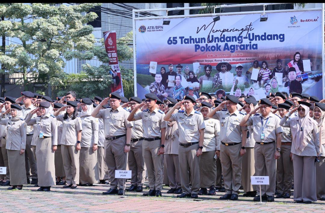 JAKARTA – Global investigasi News.com – Kementerian Agraria dan Tata Ruang/Badan Pertanahan Nasional (ATR/BPN) menggelar Upacara Peringatan Hari Agraria dan Tata Ruang (HANTARU) 2025, di Lapangan Kementerian ATR/BPN, Jakarta, Rabu (24/09/2025). Dengan mengusung tema “Tanah Terjaga, Ruang Tertata, Wujudkan Asta Cita”, upacara berlangsung khidmat dan penuh makna bagi jajaran Kementerian ATR/BPN sebagai pelayan masyarakat.