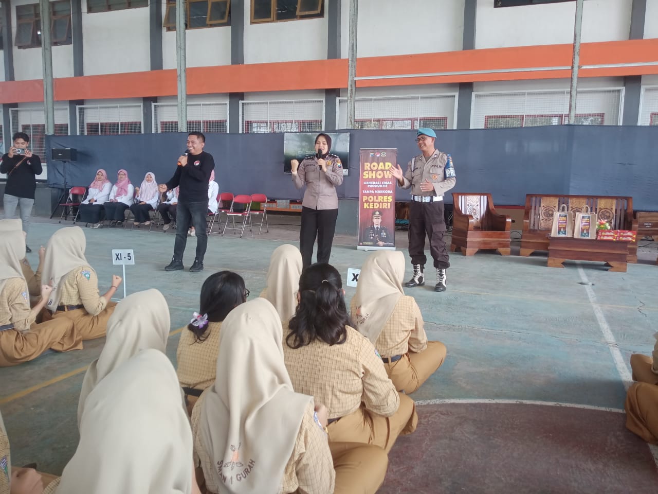 Kediri, – Satuan Reserse Narkoba (Satresnarkoba) Polres Kediri saat melaksanakan kegiatan penyuluhan di SMAN 1 Gurah, Kabupaten Kediri, pada Rabu (24/9/2025).