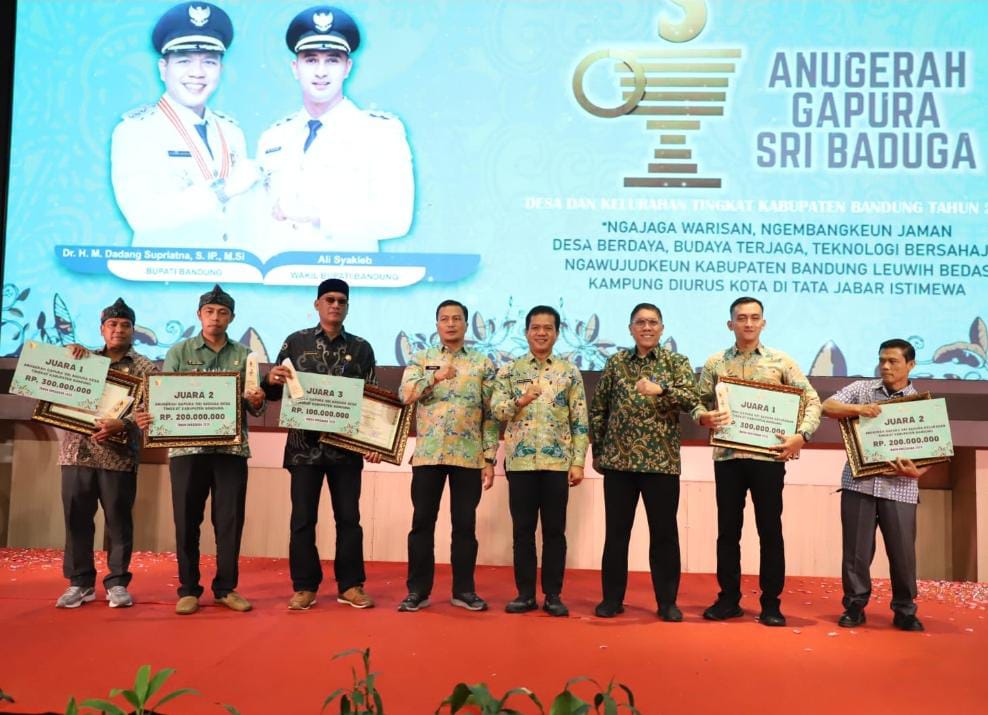 KAB BANDUNG – Desa Cibiru Wetan dan Kelurahan Pasawahan berhasil meraih Anugerah Gapura Sri Baduga, sebagai terbaik pertama untuk kategori desa dan kelurahan terbaik di Kabupaten Bandung tahun 2025.