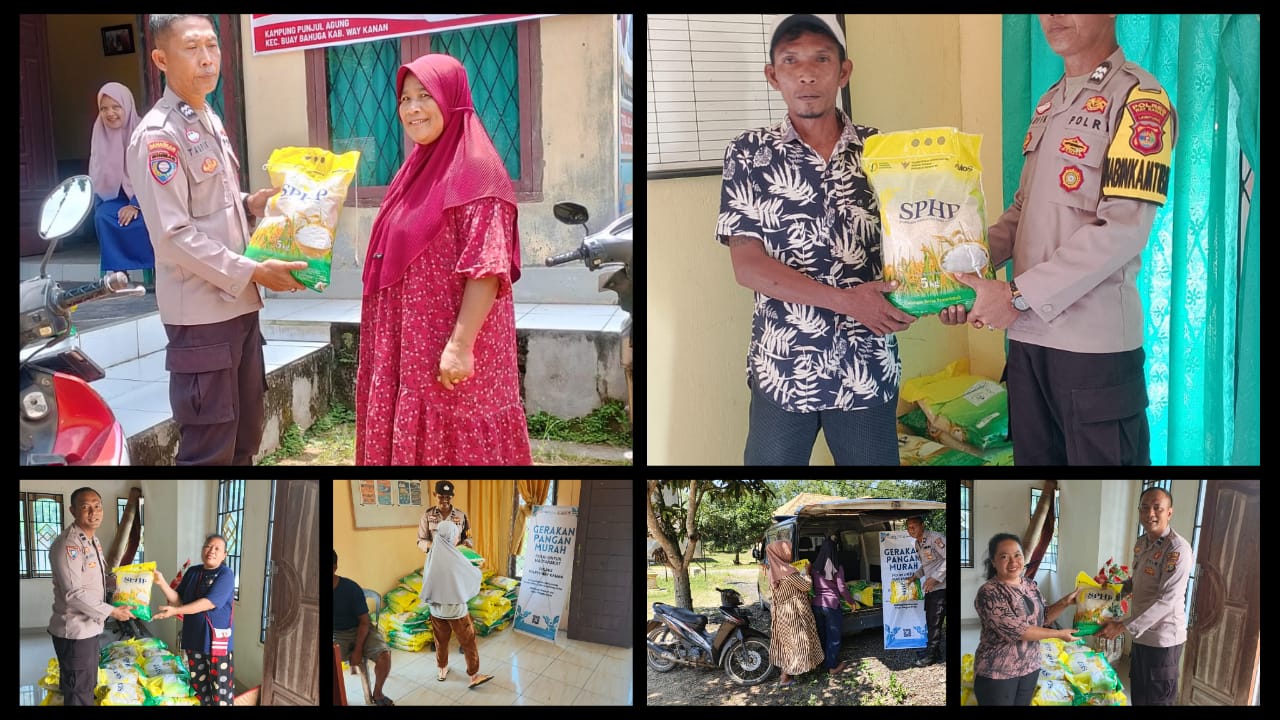 Polsek Buay Bahuga Polres Way Kanan menggelar kegiatan Gerakan Pangan Murah (GPM) sebagai wujud kepedulian terhadap pemenuhan kebutuhan pokok warga di Balai Kampung Punjul Agung dan Lebung Lawe Kecamatan Buay Bahuga Kabupaten Way Kanan. Senin (06/10/2025).