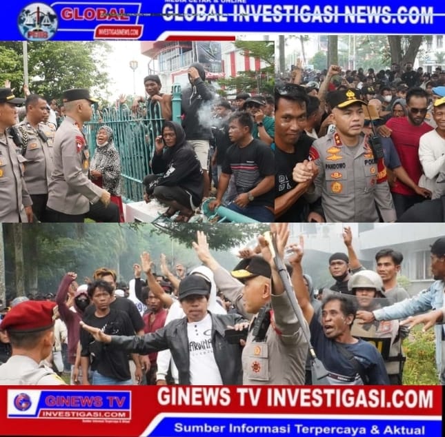 Kapolda Bangka Belitung Irjen Pol Hendro Pandowo memantau langsung aksi unjuk rasa (unras) yang digelar di Kantor PT. Timah Tbk Pangkalpinang, Senin (6/10/25).