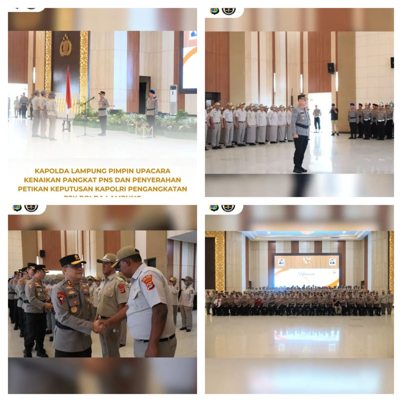 Upacara Kenaikan Pangkat PNS Polri Polda Lampung Periode 1 Oktober 2025 dan Penyerahan Petikan Keputusan Kapolri Pengangkatan P3K Polda Lampung