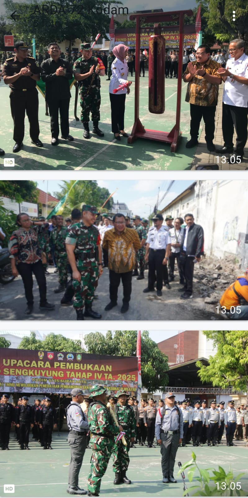 Surakarta – TNI Manunggal Membangun Desa ( TMMD ) Sengkuyung Tahap IV TA. 2025 di wilayah Kodim 0735/Surakarta hari ini secara resmi telah di buka oleh Wakil Walikota Surakarta Astrid Widayani Beserta Komandan Kodim 0735/Surakarta Letkol Inf Fictor. J Situmorang. S.I.P,.M.I.P bertempat di Halaman SMPN 26 Surakarta Jl. Arifin Kelurahan Kepatihan Kulon Kecamatan Jebres, Rabu ( 08/10/205 ).