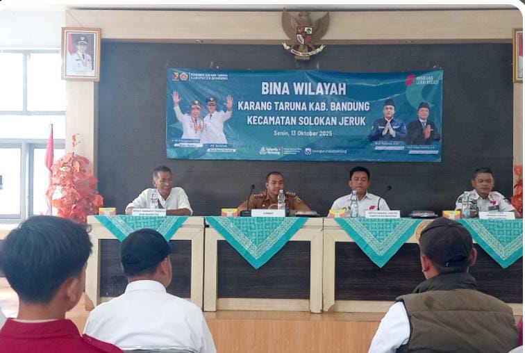 Kabupaten Bandung.- Karang Taruna mengadakan acara bina wilayah bagi Seluruh Pengurus Karang Taruna Desa Se-Kecamatan Solokan Jeruk.di Aula Kantor Kecamatan Solokan Jeruk.Pada Senin (13/10/2025).