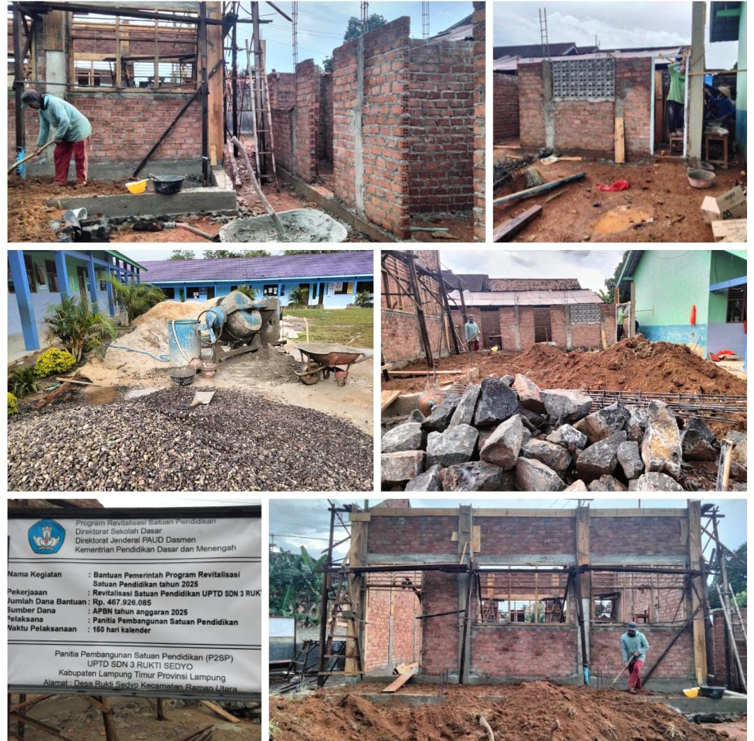 Lampung Timur – Proyek Revitalisasi Satuan Pendidikan UPTD SDN 3 Rukti Sedyo di Kecamatan Raman Utara, Kabupaten Lampung Timur, menuai sorotan publik. Berdasarkan pantauan lapangan, pelaksanaan pembangunan dengan nilai Rp 467.926.085 yang bersumber dari APBN Tahun Anggaran 2025 ini diduga tidak sesuai dengan standar konstruksi yang berlaku.