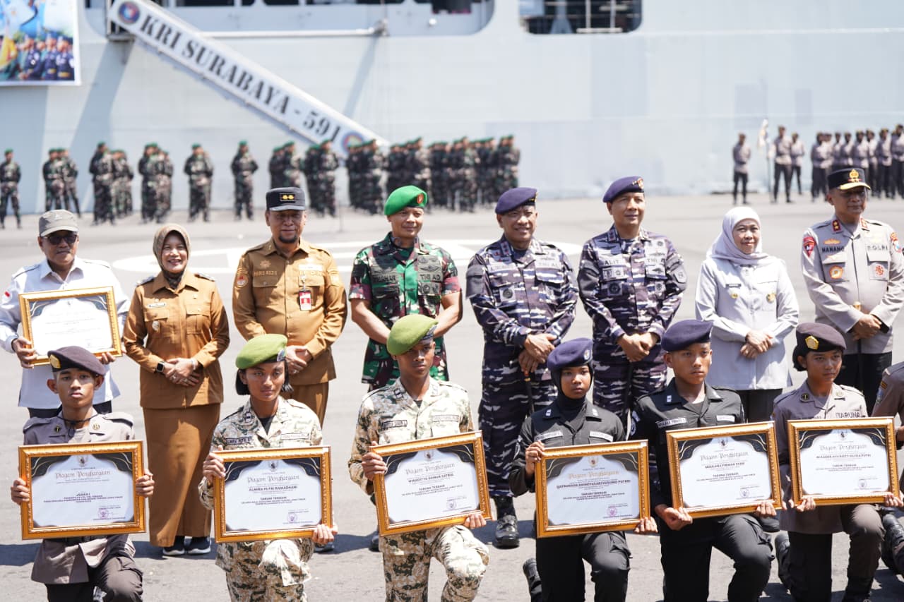 Surabaya,- Kasdam V/Brawijaya, Brigjen TNI Zainul Bahar, S.H, M.Si, menghadiri berlangsungnya upacara pembaretan siswa SMA Negeri Taruna Jawa Timur yang berlangsung di Dermaga Ujung Koarmada II/Surabaya pada Kamis (16/10/2025).
