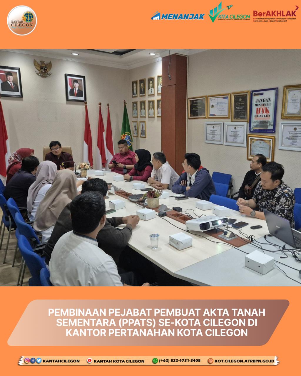 Dengan semangat “Melayani, Profesional, dan Terpercaya,” Kantor Pertanahan Kota Cilegon berkomitmen untuk terus melakukan pembinaan berkelanjutan demi mewujudkan layanan pertanahan yang berkualitas dan berintegritas di seluruh wilayah Kota Cilegon.