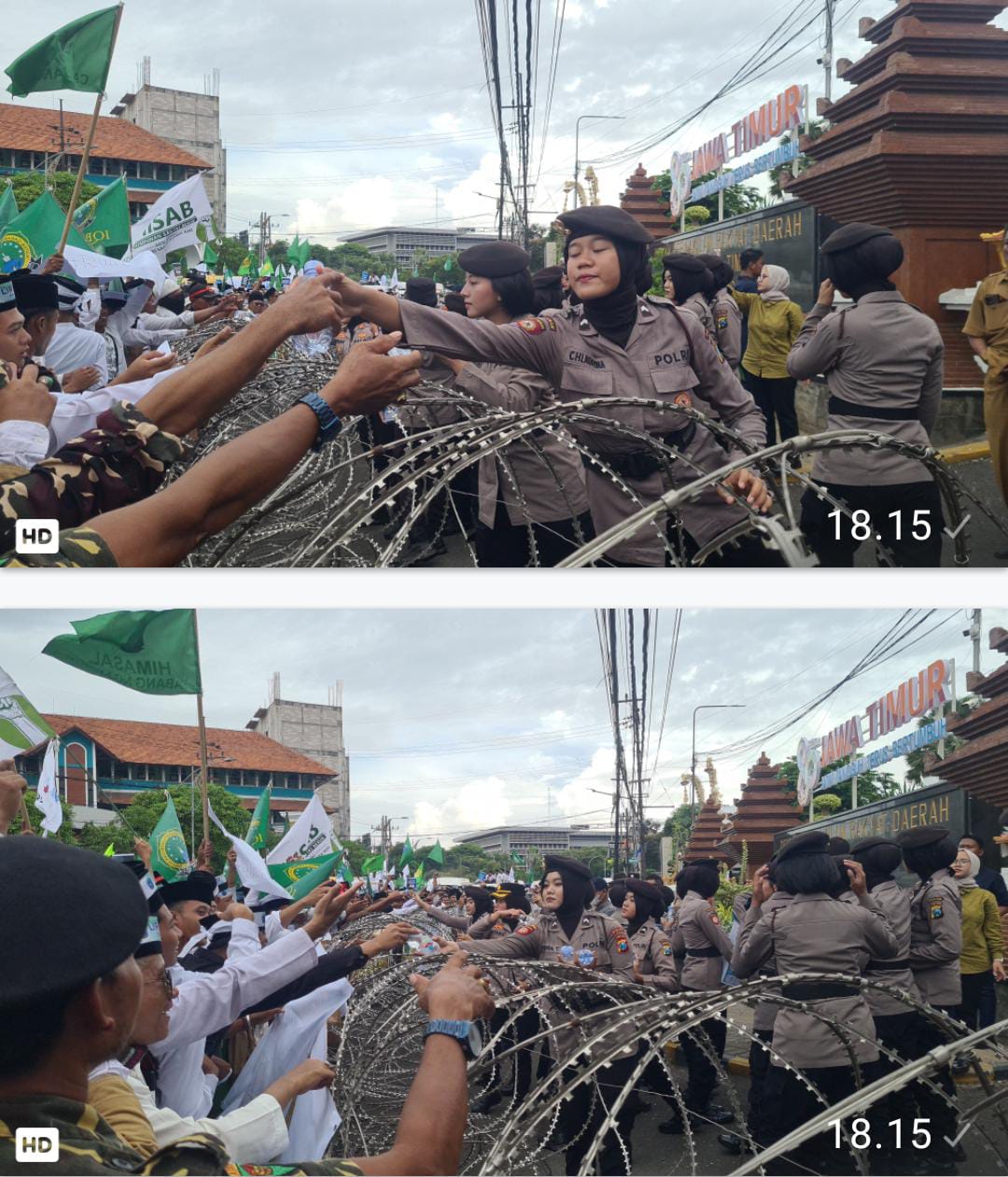 Aksi tersebut kemudian difasilitasi oleh pihak kepolisian hingga perwakilan santri diterima langsung oleh Ketua DPRD Provinsi Jawa Timur.