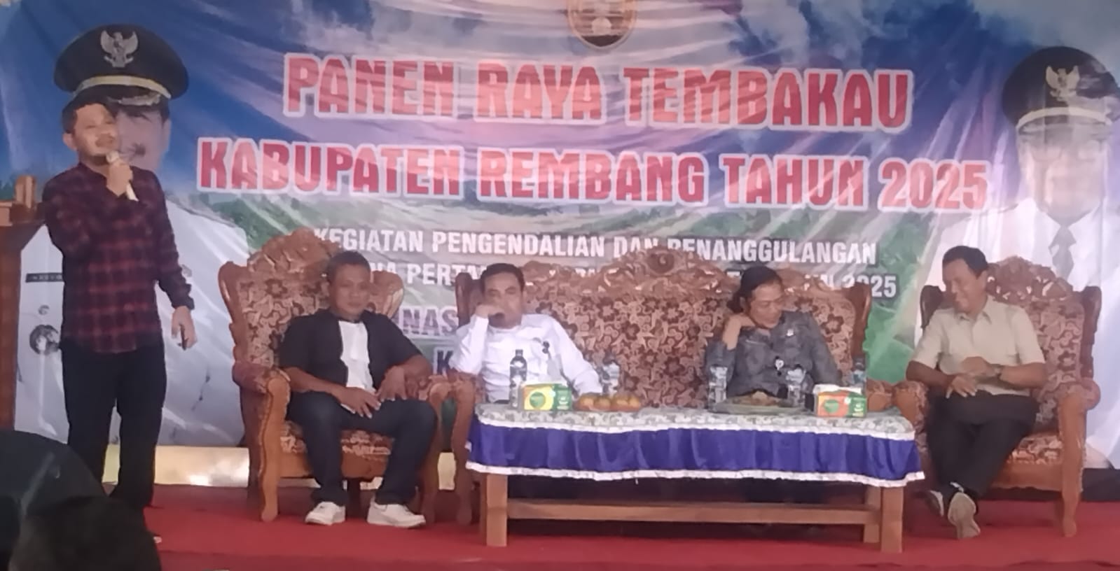 REMBANG || GLOBAL INVESTIGASI NEWS.COM. Pelaksanaan panen raya tembakau yang di pusatkan di Desa Kuangsan Kecamatan Kaliori , dalam acara tersebut di hadiri oleh Bupati Rembang Harno, SE. Ketua DPRD Kab. Rembang, Camat Kaliori, KA. Dinas Pertanian dan Tanaman Pangan Kabupaten Rembang, Dinas Perlindungan dan Tanaman Pangan Propinsi Jawa Tengah Hera, Perwakilan dari PT. Sadana Kabupaten Rembang, Ketua APTI Kabupaten Rembang Wawan dan staf bidang Perkebunan Dintanpan Kabupaten Rembang.
