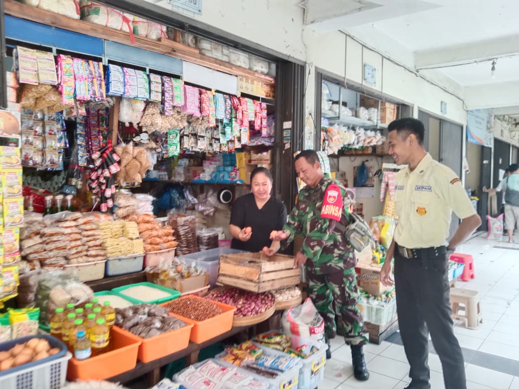 Surakarta – Babinsa Kelurahan Nusukan,Koramil 02/Banjarsari,Kodim 0735/Surakarta Serka Supadmo bersama dengan Bapak Suyoto Selaku Lurah Pasar Tradisional Nusukan dan Security melaksanakan pengecekan harga sembako bertempat di Pasar Tradisional Nusukan Jalan Kapten Piere Tendean Kelurahan Nusukan,Kecamatan Banjarsari, Kamis (23/10/2025).