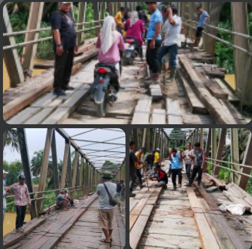 Perbaikan jembatan mengganti balok sabun dengan ukuran 10 x 15 cm, masing masing perusahaan memberikan 50 batang, ucap bapak Alwi Manajer Peron (RAM) PT SAGO NAULI, pada awak media Gi news.