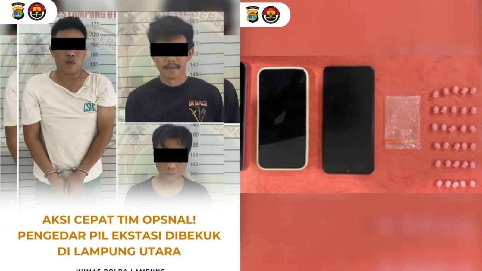 Tiga pelaku berinisial MGA (27), AS (39), dan APS (33) diamankan Tim Opsnal Sat Narkoba Polres Lampung Utara bersama 30 butir pil ekstasi siap edar serta 3 unit handphone.