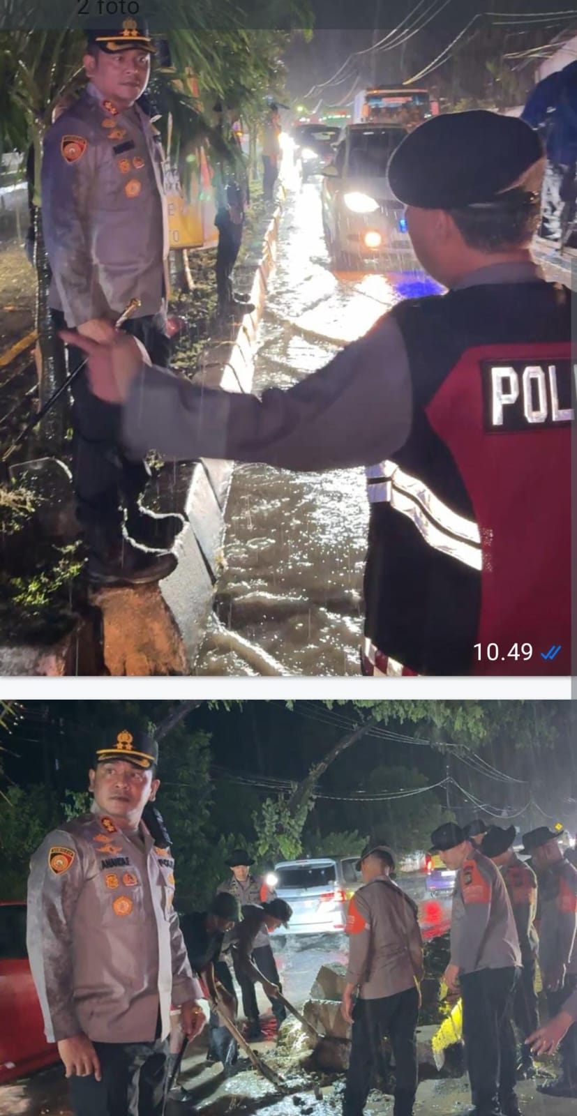 “Kami putuskan untuk segera menjebol sebagian trotoar dan separator jalan. Ini adalah solusi tercepat agar air banjir bisa langsung dibuang ke laut, mencegah kemacetan dan genangan meluas,” tegas Kapolres di lokasi kejadian.