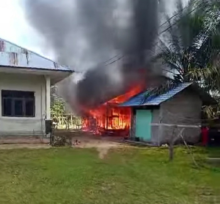 Satu unit rumah di Kompleks Pesantren Darul Istiqamah, Desa Gosong Telaga Timur (GTT), Kecamatan Singkil Utara, Kabupaten Aceh Singkil, Senin (27/10/25) sekitar pukul 11.00 WIB.